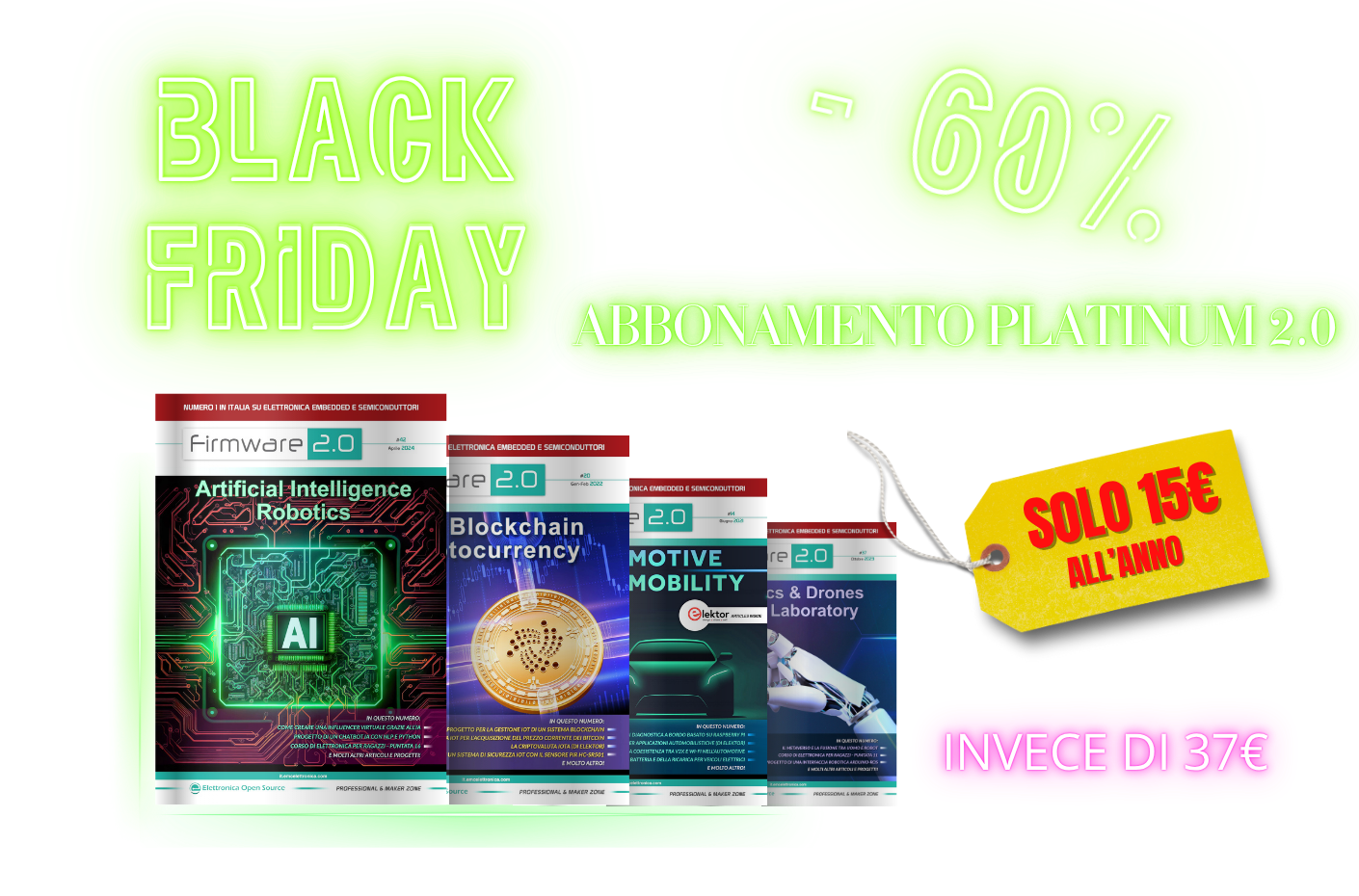 Solo 15€ all’anno invece di 37€ per accedere a contenuti esclusivi, progetti tecnici e risorse dedicate al mondo dell’elettronica embedded.