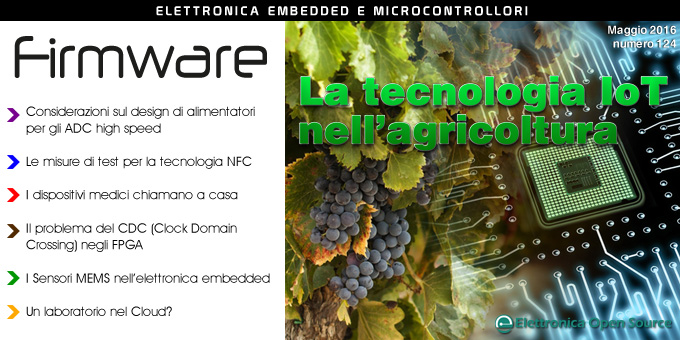 È uscito il nuovo numero di Firmware! Scopriamo insieme gli articoli di questo mese: innanzitutto la copertina è dedicata alla tecnologia IoT nell’agricoltura. Abbiamo poi proseguito con una serie di considerazioni sul design di alimentatori per gli ADC high speed; misure di test per la tecnologia NFC; dispositivi medici; il problema del CDC (Clock Domain Crossing) negli FPGA; sensori MEMS nell’elettronica embedded; laboratorio nel Cloud. Buona lettura!